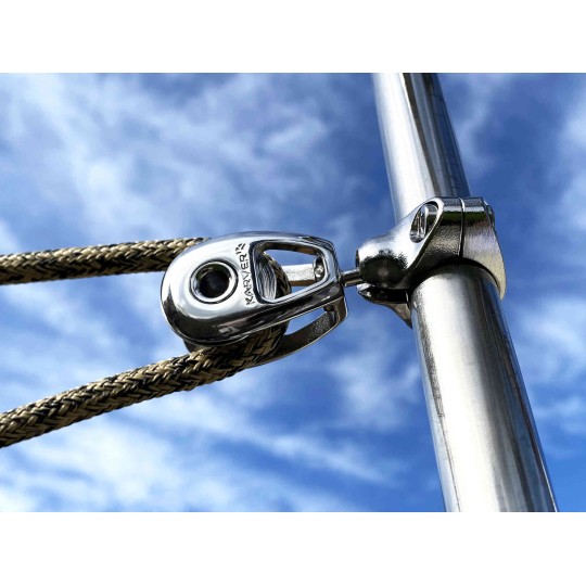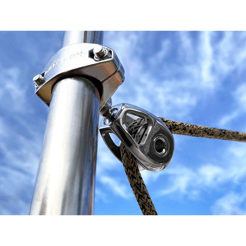 KBS10 Paslanmaz Çelik Blok. Vardavela ayakları için montajlı versiyon. Gerçekten kompakt ve yüksek performanslı bir blok olup, bilyalı rulmanla donatılmıştır. Furling halatının sürtünmesini azaltmak için mükemmeldir.